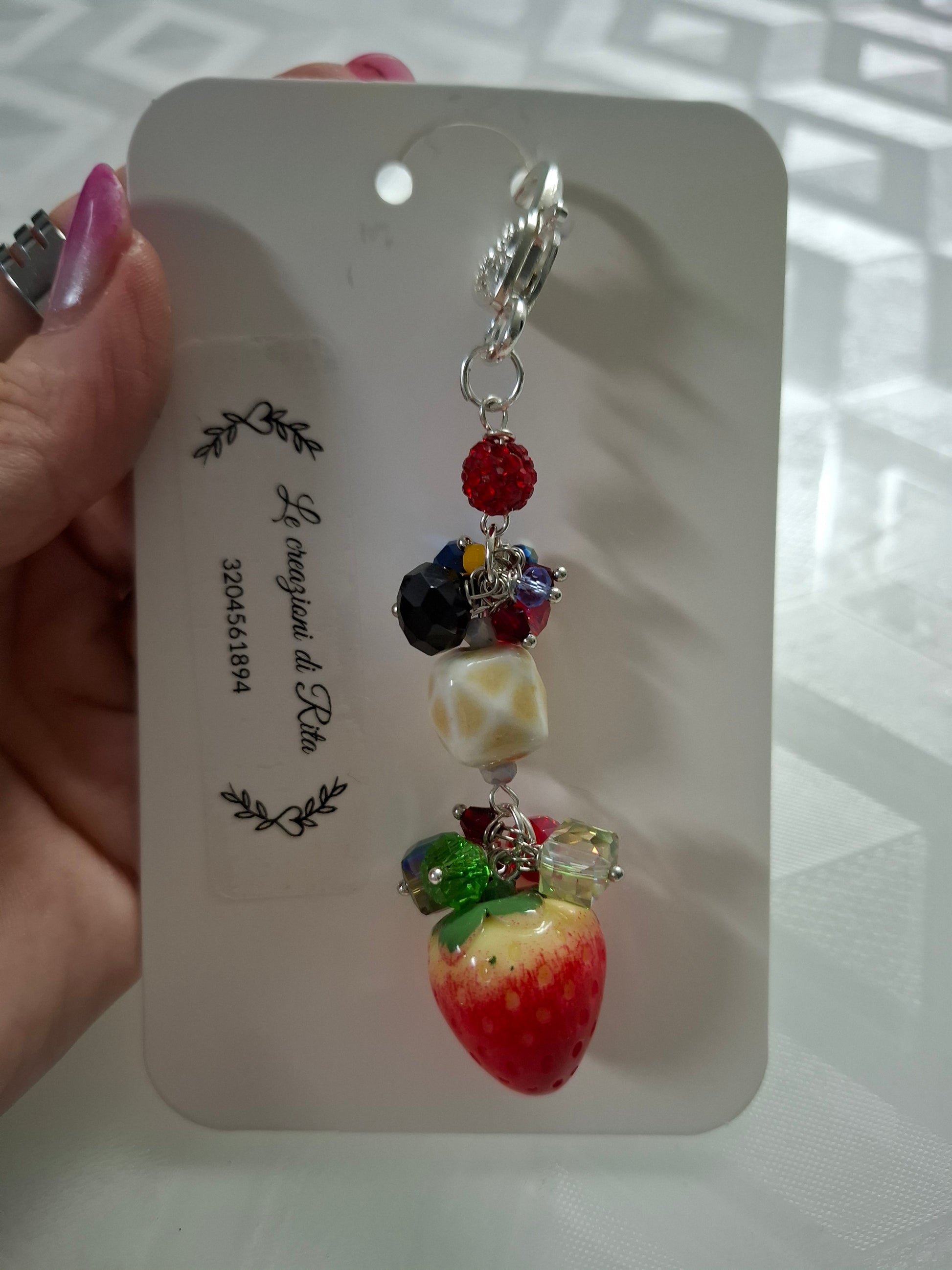 portachiave o ciondolo borsa con decoro fragola
